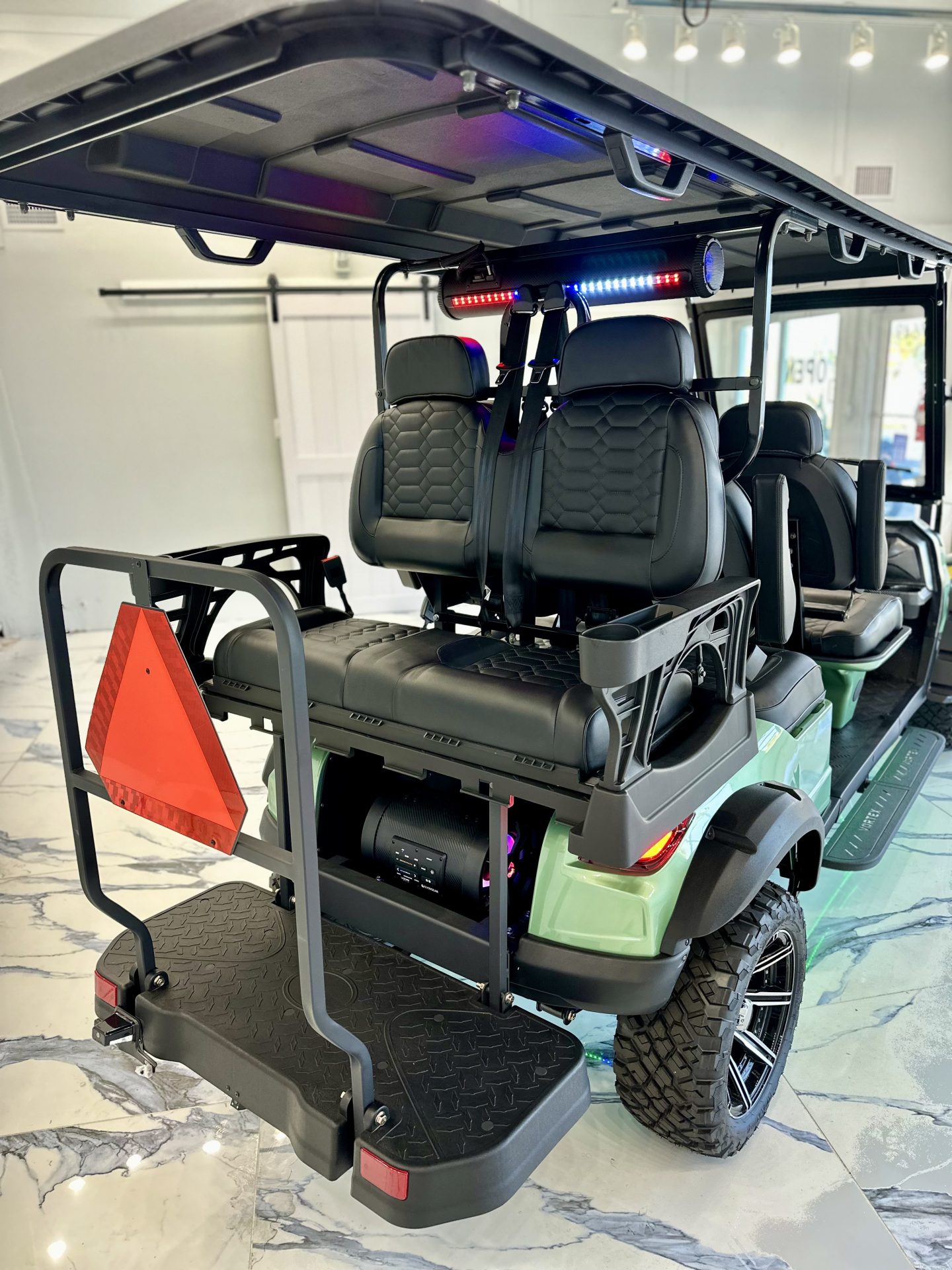 Amazing sound system with Under Glow Lighting. With all the upgrades and 76 V 105 Ah battery you will have miles and miles of fun on this cart!