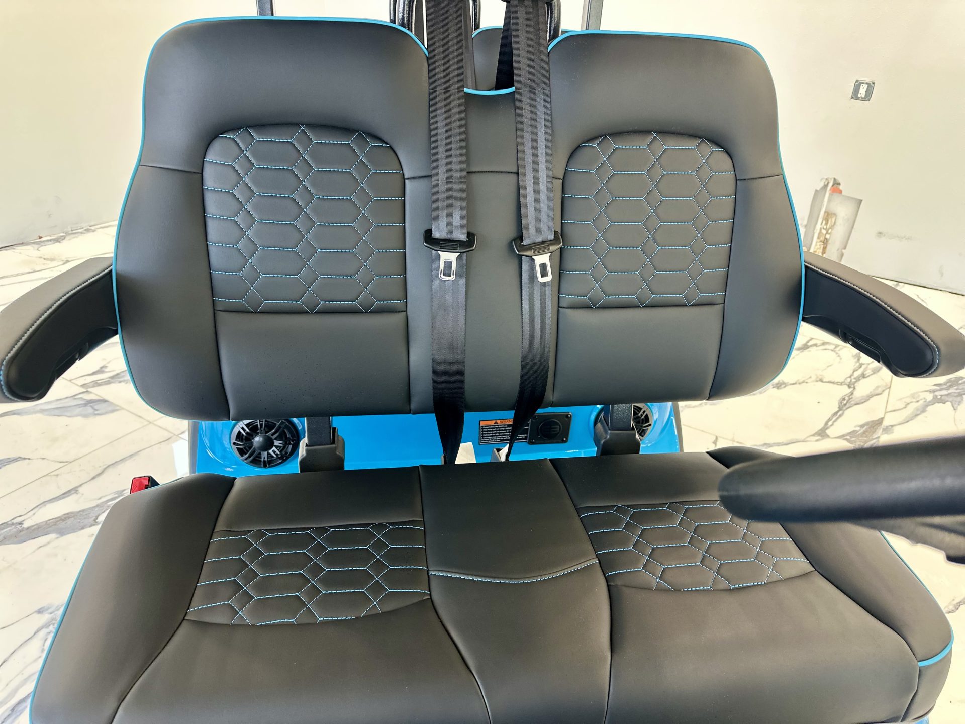 Refined performance comes standard with a 5kW AC motor, 400-amp controller, four-wheel hydraulic disc brakes, and double A-arm front suspension, all mounted on a lightweight aluminum frame for a ride that’s composed, stable, and remarkably smooth.
