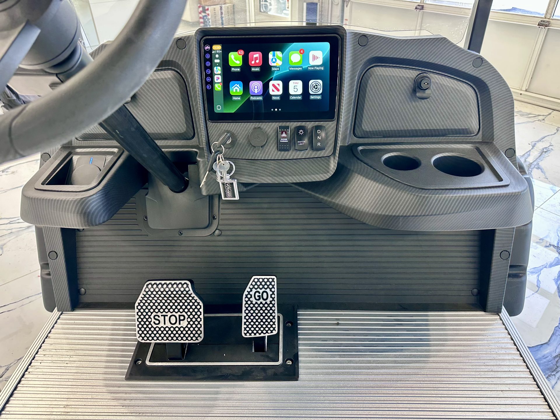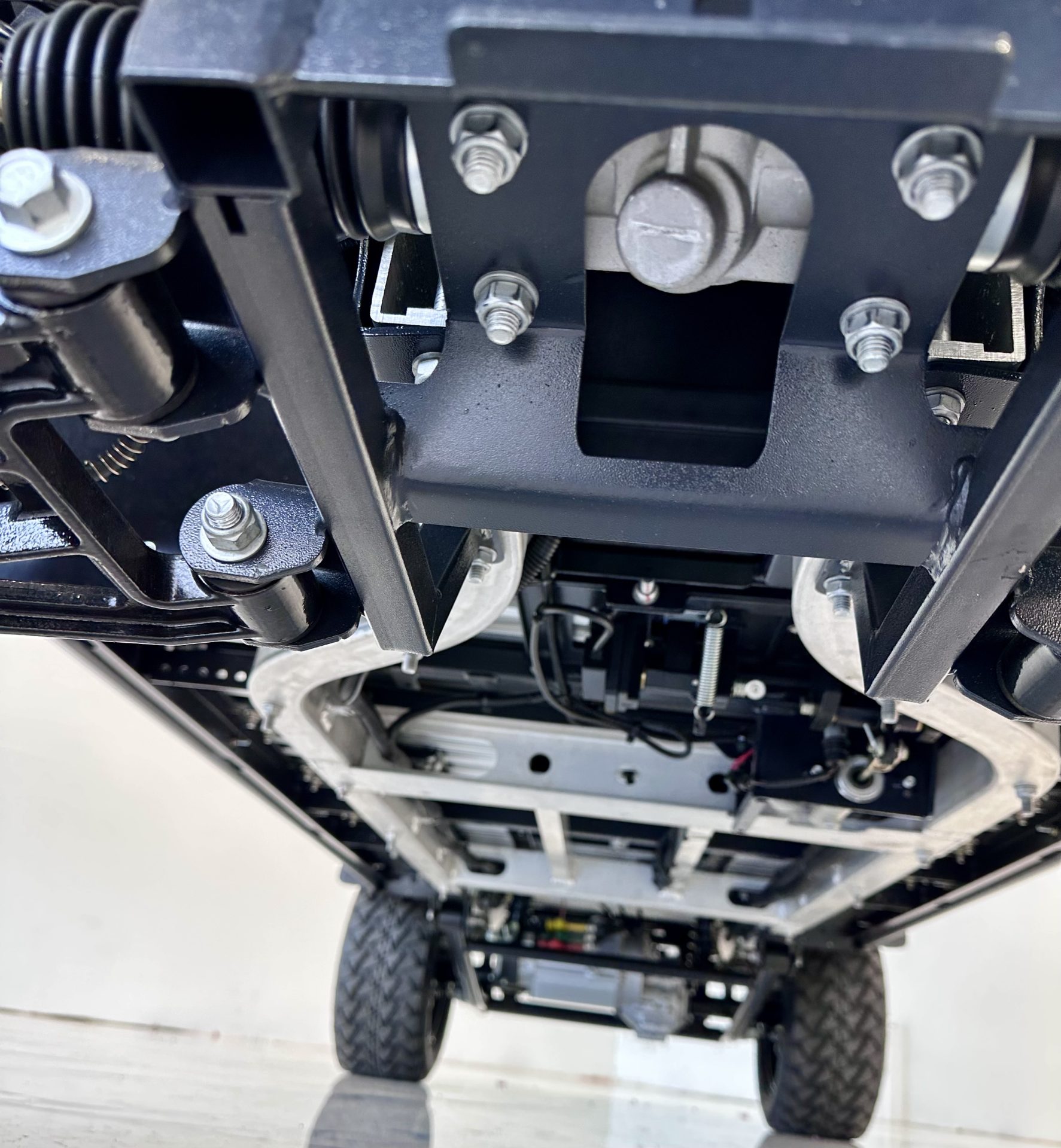 Refined performance features include a 5kW AC motor, 400-amp controller, four-wheel hydraulic disc brakes, and double A-arm front suspension, all mounted on a lightweight aluminum frame for a ride that’s composed, stable, and remarkably smooth.